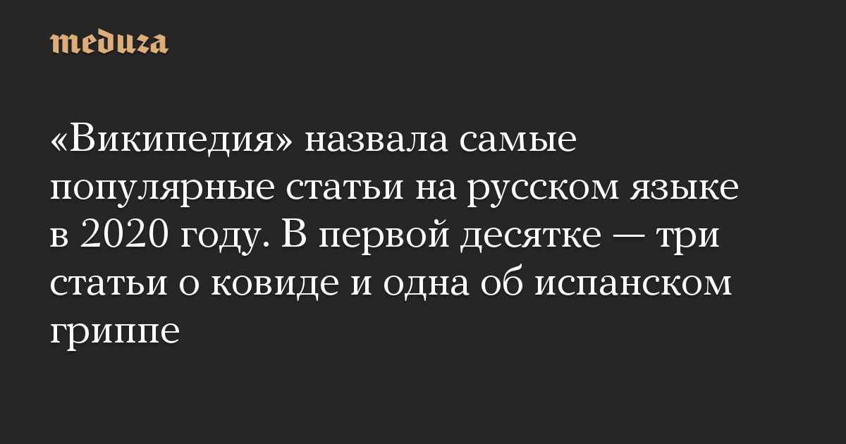 «Википедия» назвала самые популярные статьи на русском языке в 2020 году. В первой десятке — три статьи о ковиде и одна об испанском гриппе