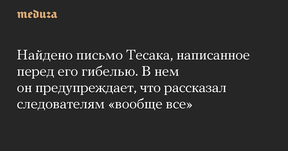 Найдено письмо Тесака, написанное перед его гибелью. В нем он предупреждает, что рассказал следователям «вообще все»