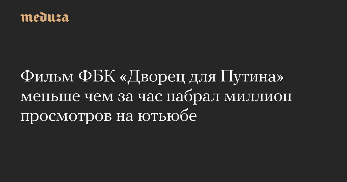 Фильм ФБК «Дворец для Путина» меньше чем за час набрал миллион просмотров на ютьюбе
