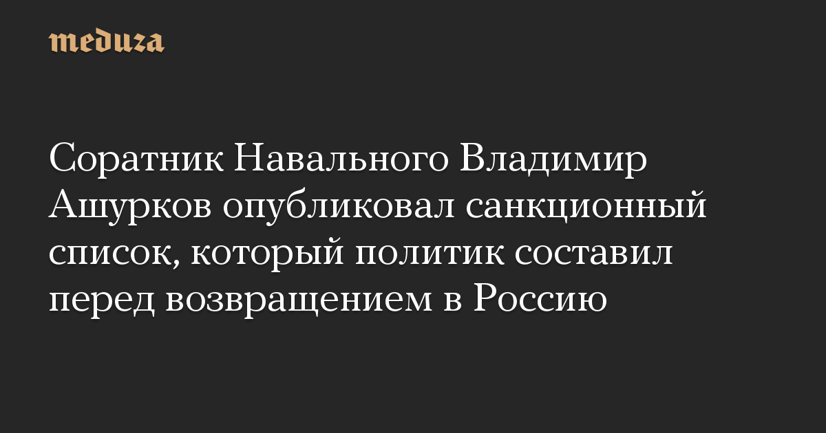«Когда Алексей [Навальный] дал мне свой список, он [список] не имел никакого отношения к его возвращению [в Россию]. Он ожидал, что я доведу список до сведения западных правительств, — пишет Ашурков. — Однако, учитывая арест Алексея и угрозу, что его лишат свободы на долгие годы, я решил, что лучше всего обнародовать список».