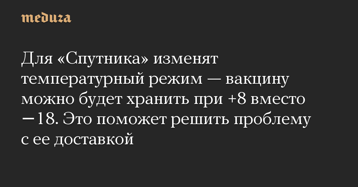 Для «Спутника» изменят температурный режим — вакцину можно будет хранить при +8 вместо −18. Это поможет решить проблему с ее доставкой
