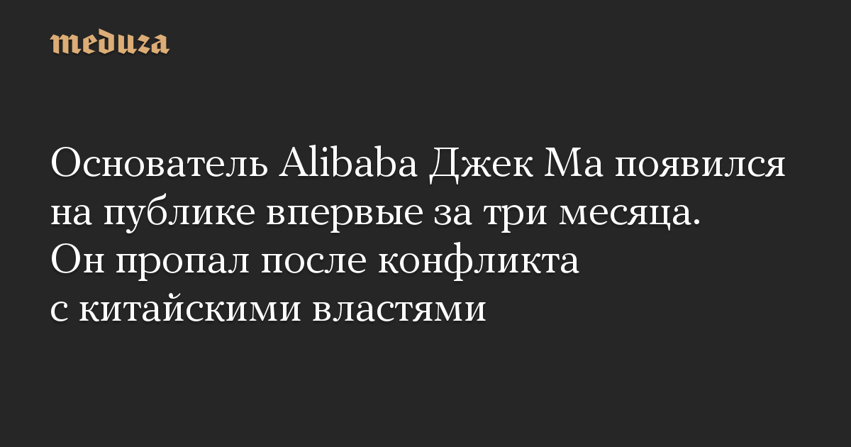 Основатель китайского интернет-ритейлера Alibaba Джек Ма появился на публике впервые за почти три месяца, сообщает The Wall Street Journal со ссылкой на китайские СМИ.