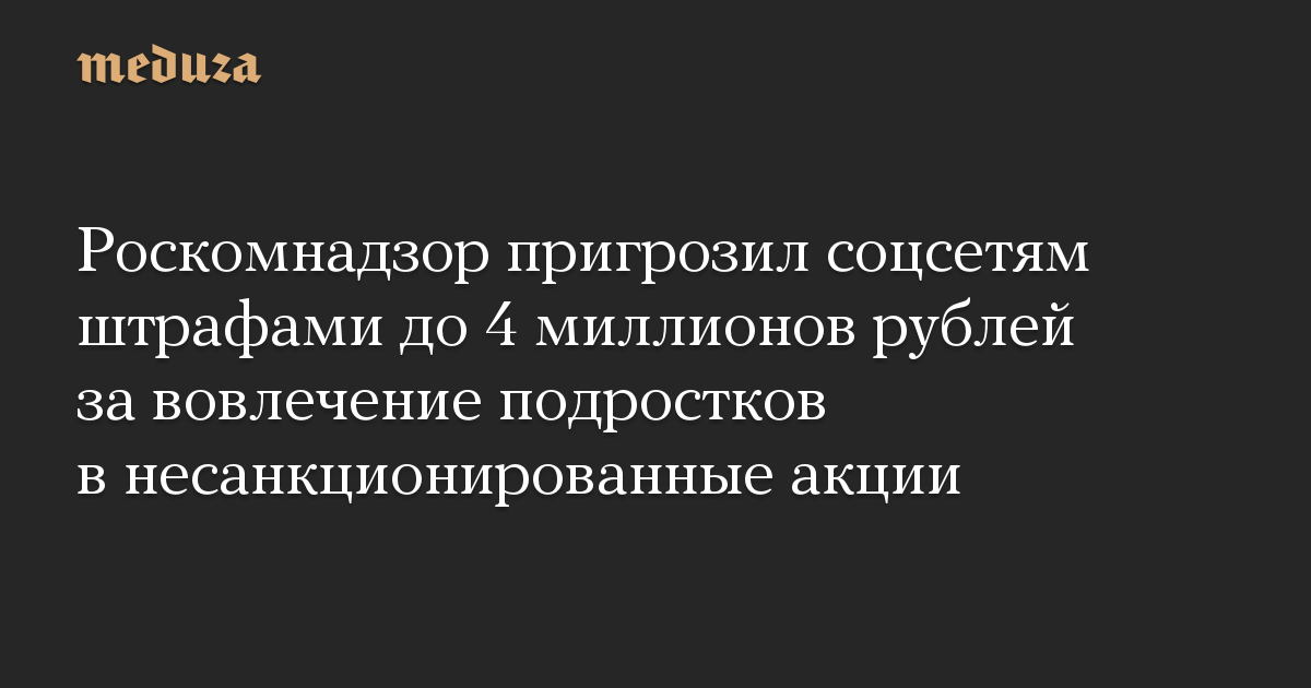 Роскомнадзор пригрозил соцсетям штрафами до 4 миллионов рублей за вовлечение подростков в несанкционированные акции