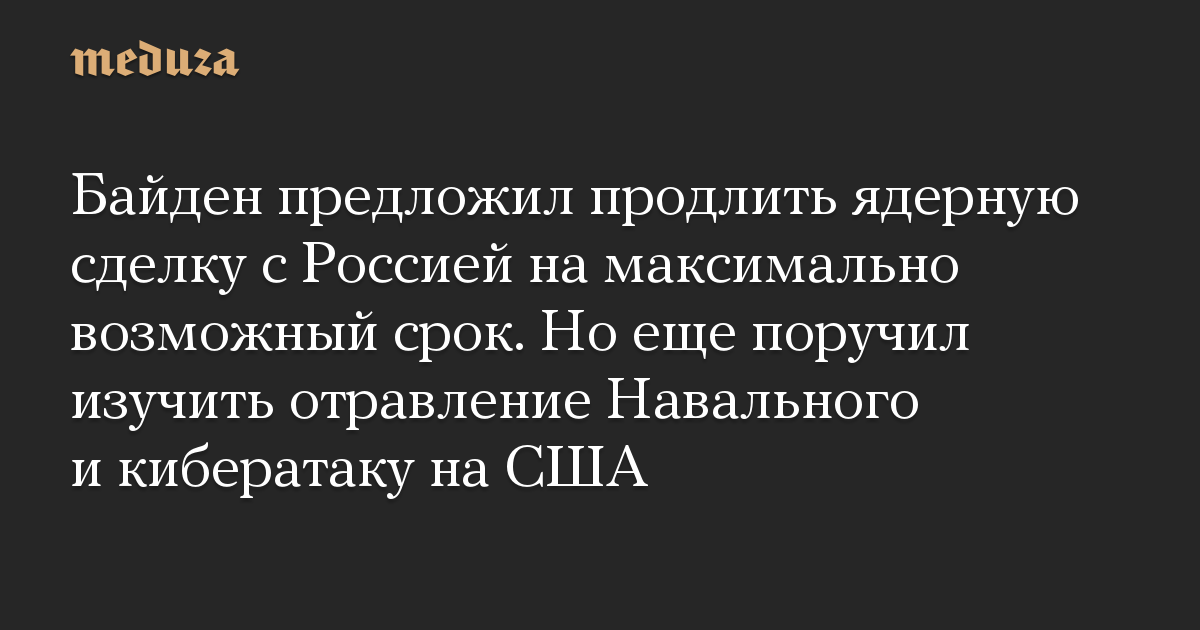 Байден предложил продлить ядерную сделку с Россией на максимально возможный срок. Но еще поручил изучить отравление Навального и кибератаку на США