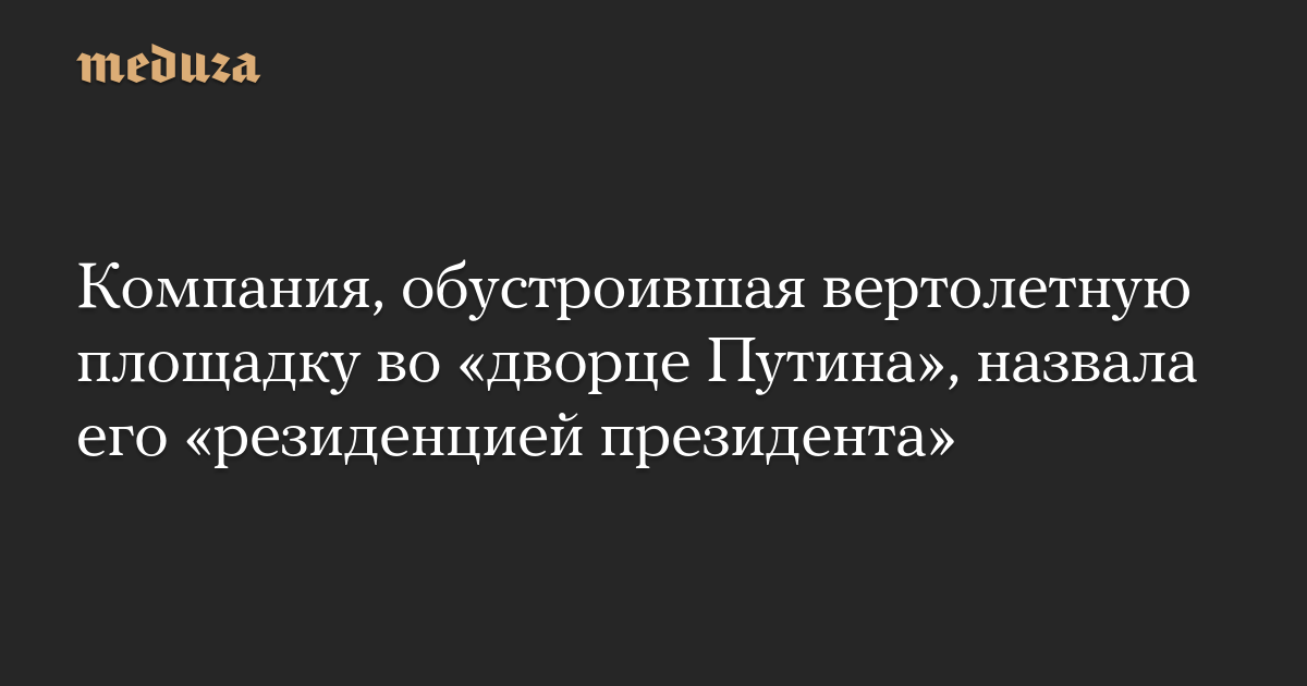 Компания, обустроившая вертолетную площадку во «дворце Путина», назвала его «резиденцией президента»