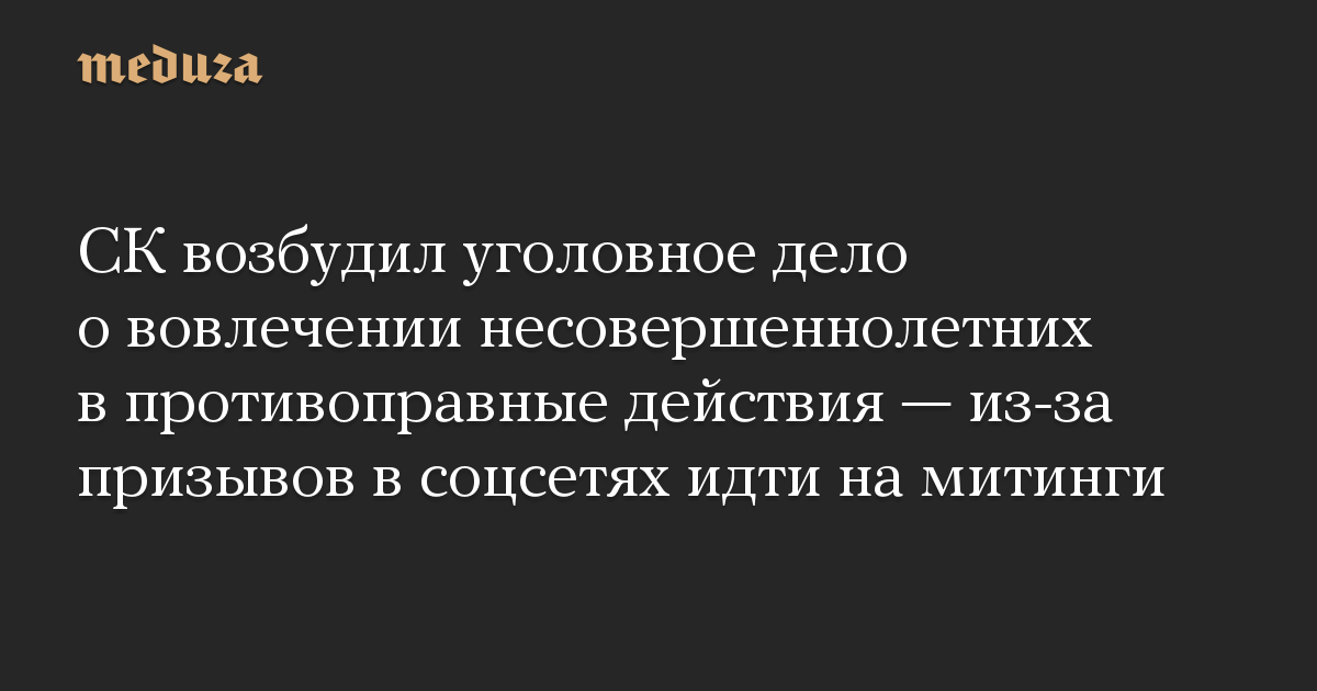 СК возбудил уголовное дело о вовлечении несовершеннолетних в противоправные действия — из-за призывов в соцсетях идти на митинги