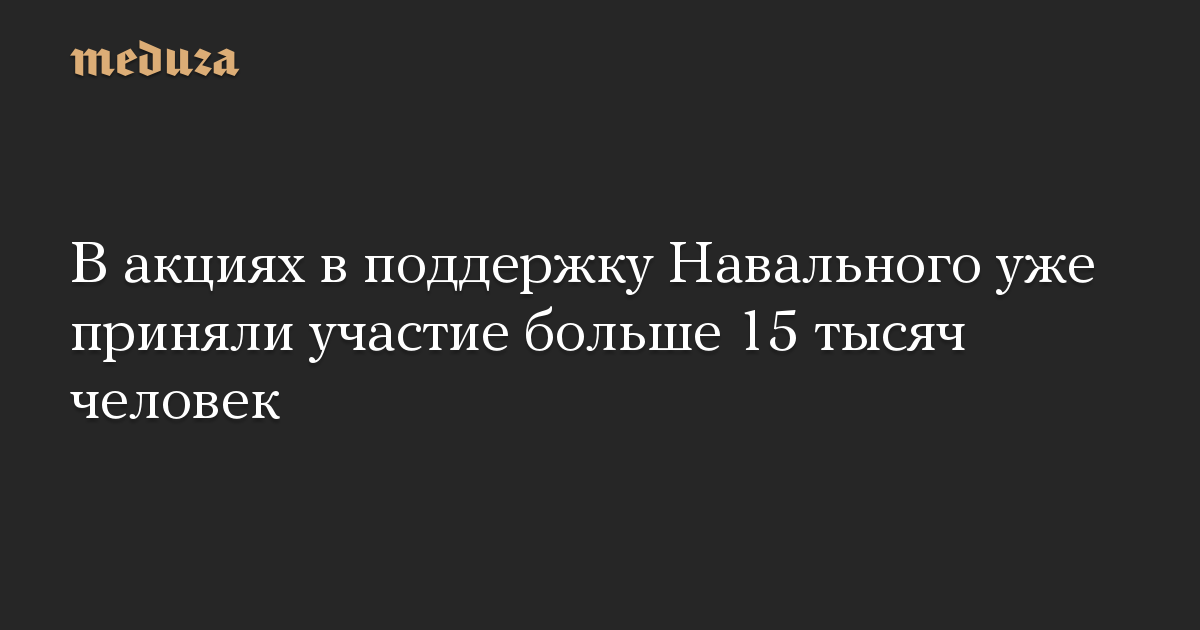 В митингах в поддержку Алексея Навального в разных городах России уже приняли участие больше 15 тысяч человек. Такие данные по состоянию на 11:00 по московскому времени приводит «МБХ медиа», основываясь на подсчетах своих корреспондентов в регионах.