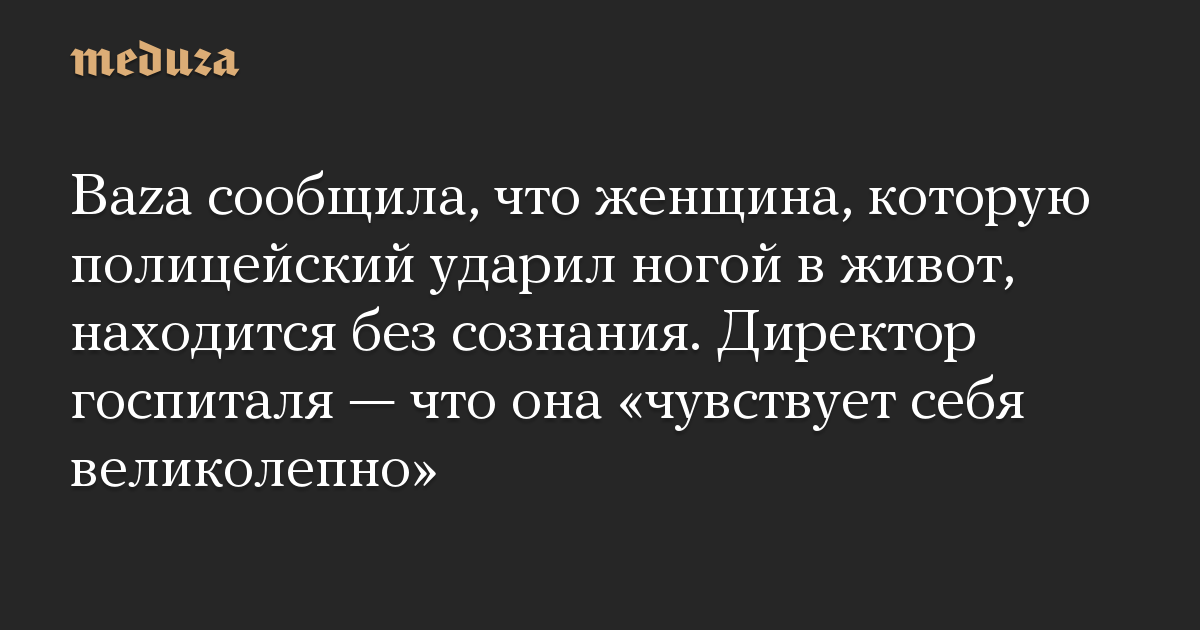 Baza сообщила, что женщина, которую полицейский ударил ногой в живот, находится без сознания. Директор госпиталя — что она «чувствует себя великолепно»