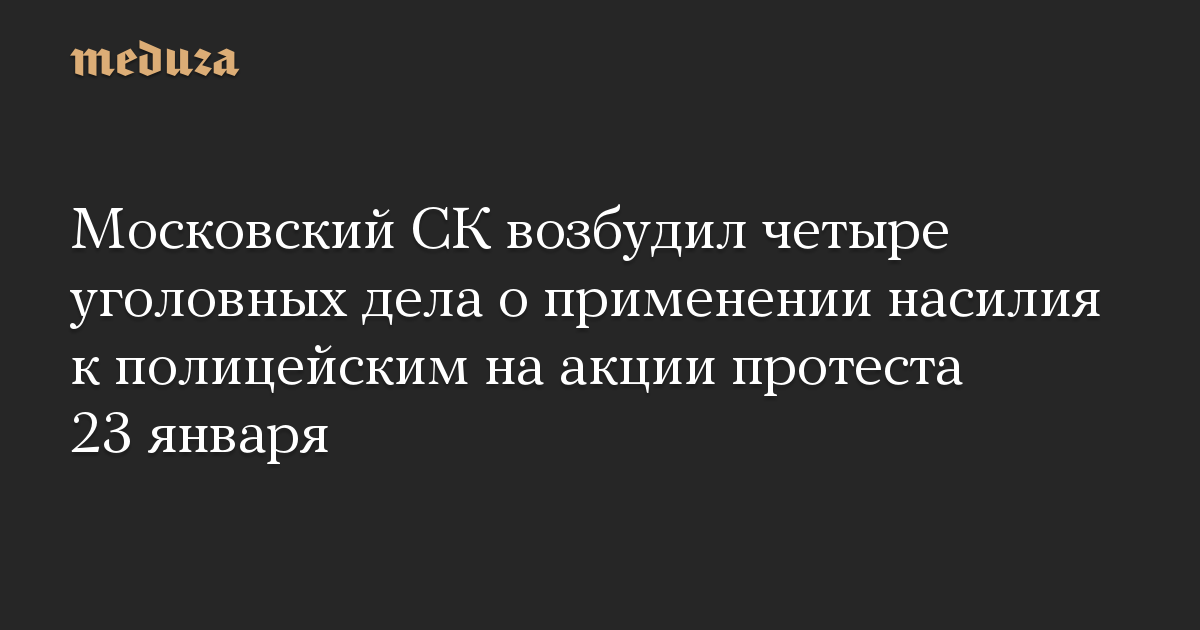 Главное следственное управление СК России по Москве возбудило четыре уголовных дела по статье о применении насилия к полицейским (статья 318 УК РФ) на акции протеста 23 января.