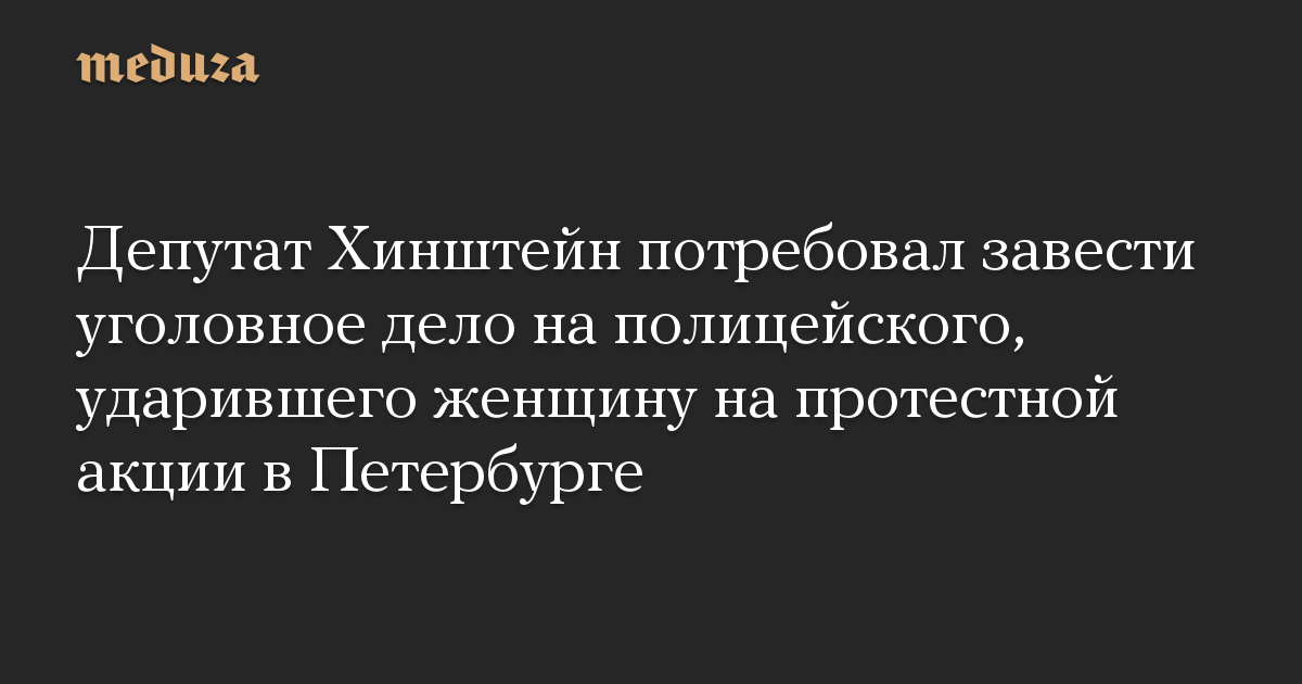 Глава комитета Госдумы по информполитике Александр Хинштейн направил запросы в Генпрокуратуру и Следственный комитет с требованием возбудить уголовное дело в отношении полицейского, ударившего женщину на акции протеста 23 января в Санкт-Петербурге. Копию документа он опубликовал в твиттере.
