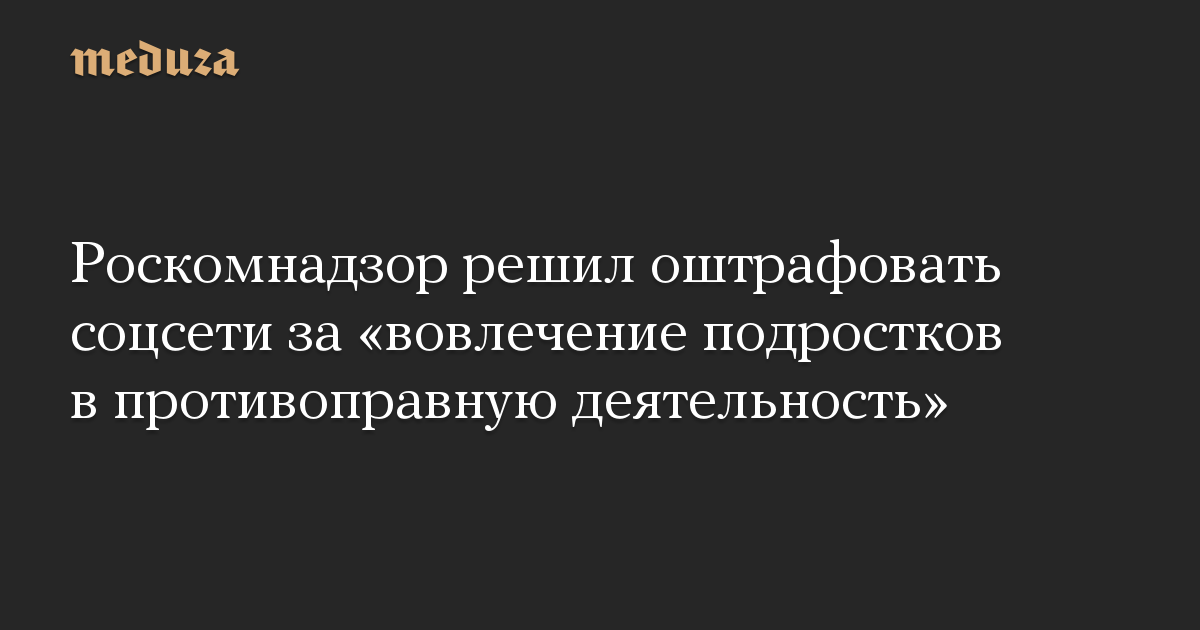 Роскомнадзор решил оштрафовать соцсети за «вовлечение подростков в противоправную деятельность»