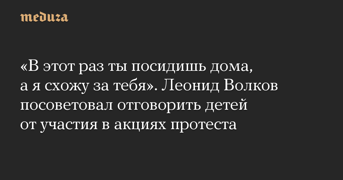 «В этот раз ты посидишь дома, а я схожу за тебя». Леонид Волков посоветовал отговорить детей от участия в акциях протеста