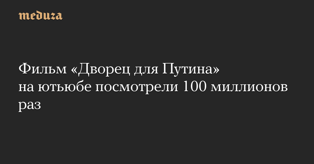 Количество просмотров фильма-расследования «Дворец для Путина» на ютьюбе превысило 100 миллионов. Об этом сообщил директор ФБК Иван Жданов.