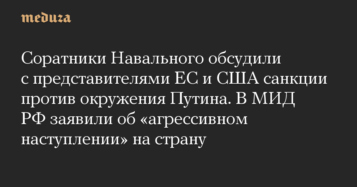 Соратники Навального обсудили с представителями ЕС и США санкции против окружения Путина. В МИД РФ заявили об «агрессивном наступлении» на страну
