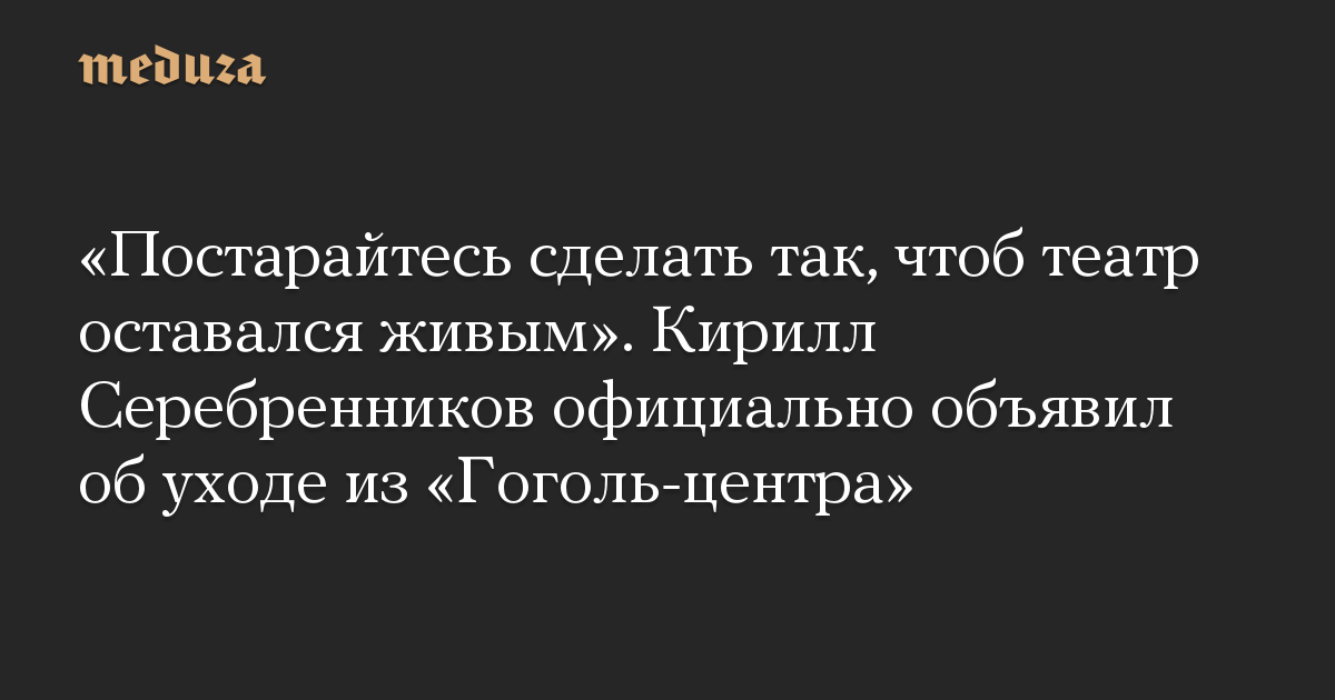 «Постарайтесь сделать так, чтоб театр оставался живым». Кирилл Серебренников официально объявил об уходе из «Гоголь-центра»