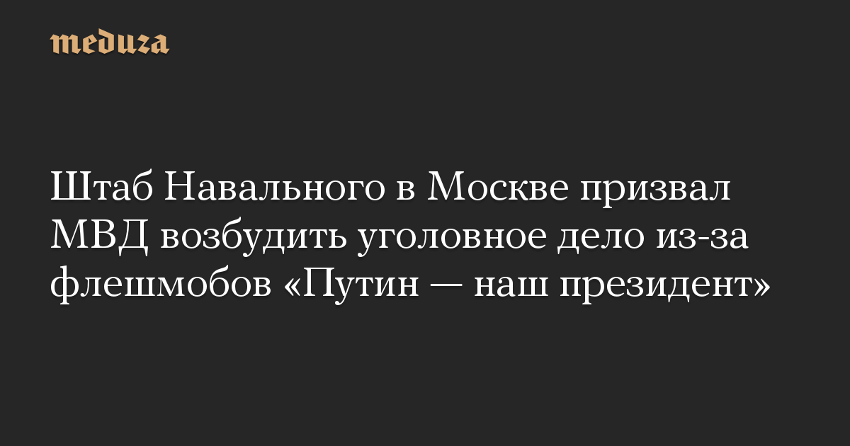 Штаб Навального в Москве призвал МВД возбудить уголовное дело из-за флешмобов «Путин — наш президент»