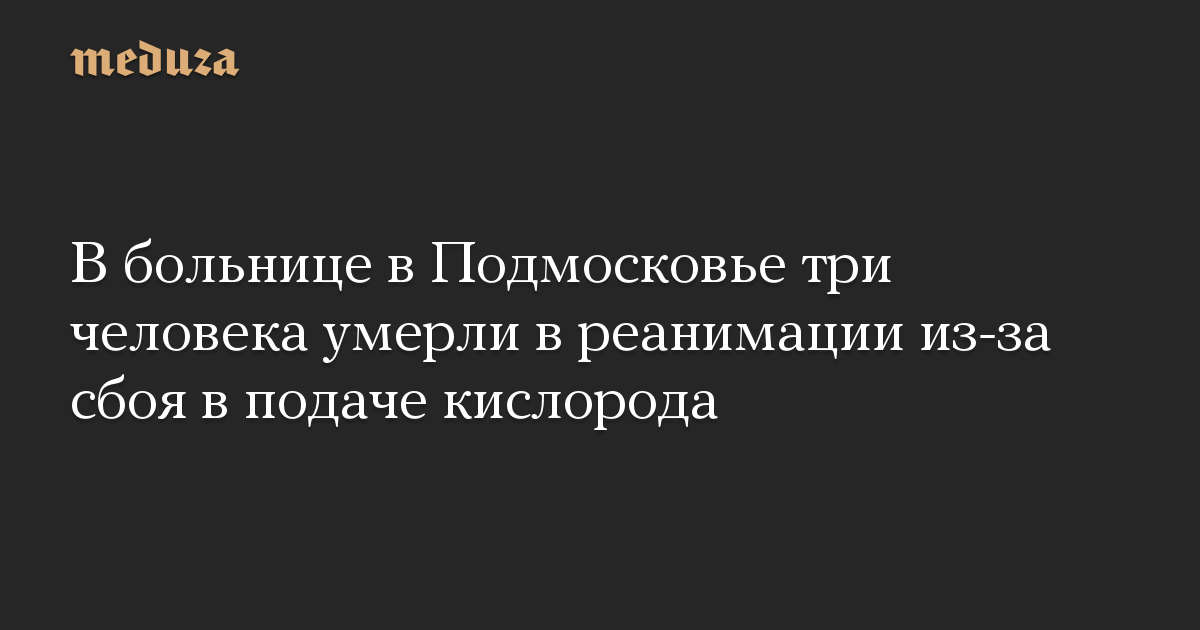 В больнице в Подмосковье три человека умерли в реанимации из-за сбоя в подаче кислорода