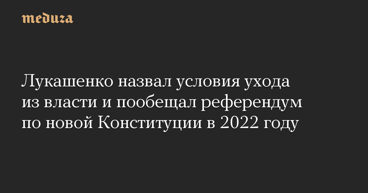 Лукашенко назвал условия ухода из власти и пообещал референдум по новой Конституции в 2022 году