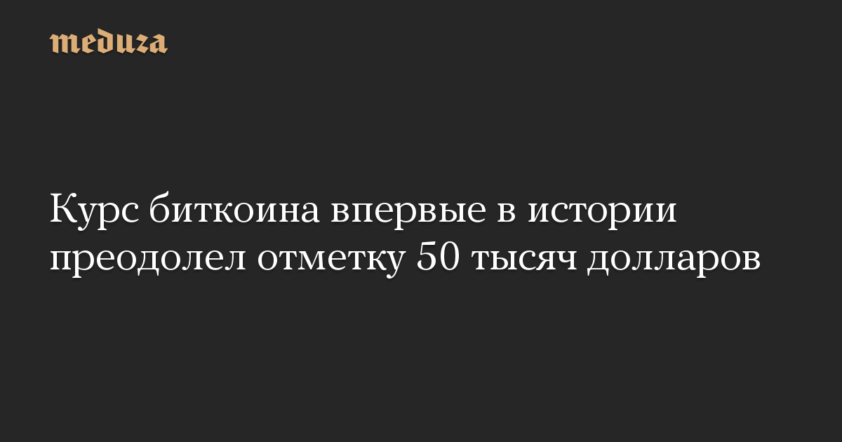 Курс биткоина превысил 50 тысяч долларов. В ходе торгов 16 февраля криптовалюта подорожала до исторического максимума — 50 602 доллара.