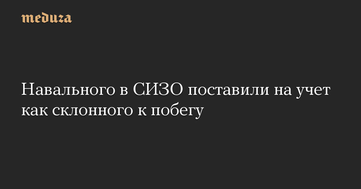 Профилактическая комиссия следственного изолятора, где находится Алексей Навальный, поставила политика на профилактический учет как склонного к побегу. Об этом сообщается в инстаграме Навального.