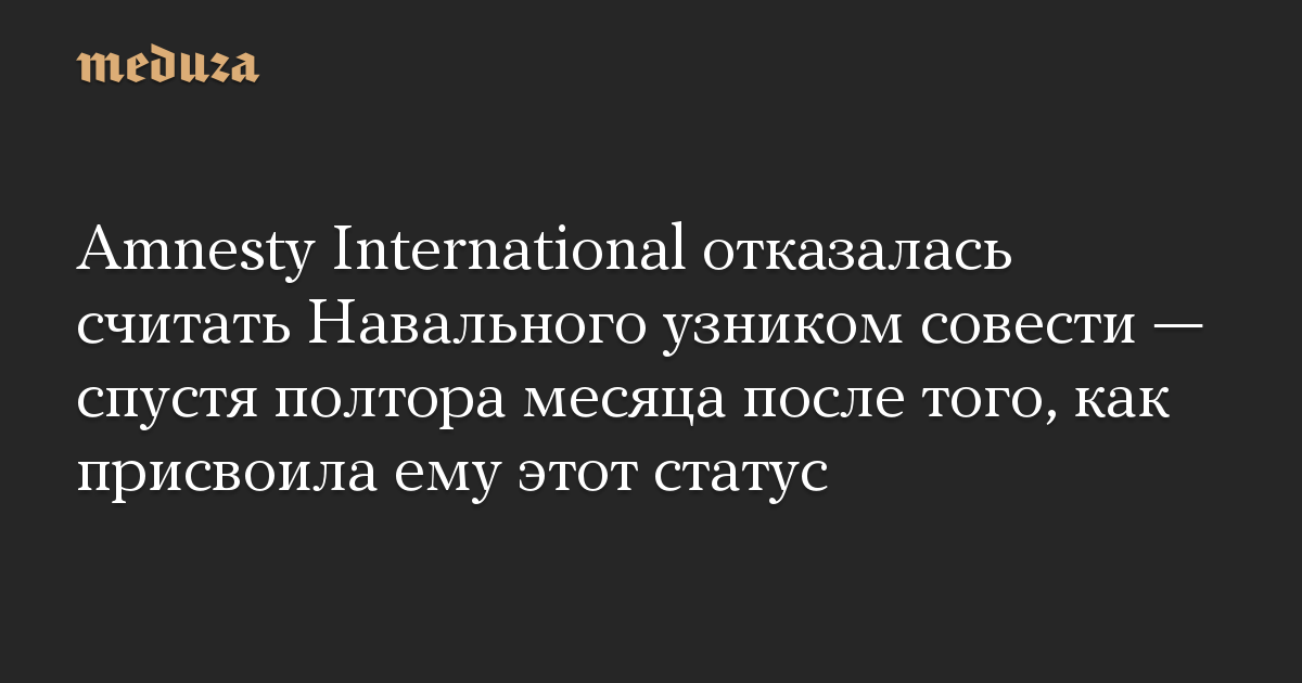 Amnesty International отказалась считать Навального узником совести — спустя полтора месяца после того, как присвоила ему этот статус