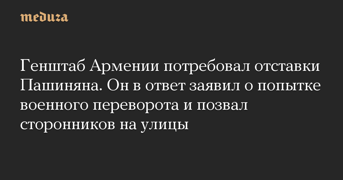 Генштаб Армении потребовал отставки Пашиняна. Он в ответ заявил о попытке военного переворота и позвал сторонников на улицы