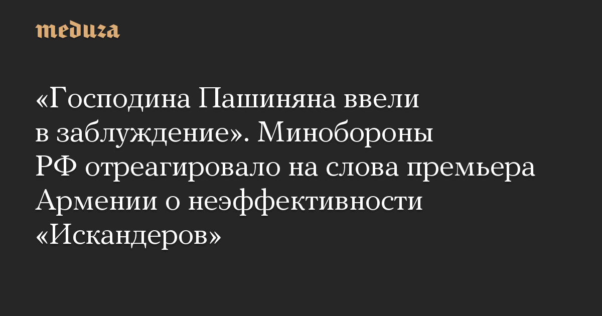 «Господина Пашиняна ввели в заблуждение». Минобороны РФ отреагировало на слова премьера Армении о неэффективности «Искандеров»