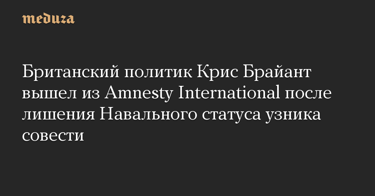 Брайант рассказал в статье для газеты The Daily Telegraph, что принял такое решение после того, как правозащитная организация лишила российского политика Алексея Навального статуса узника совести.