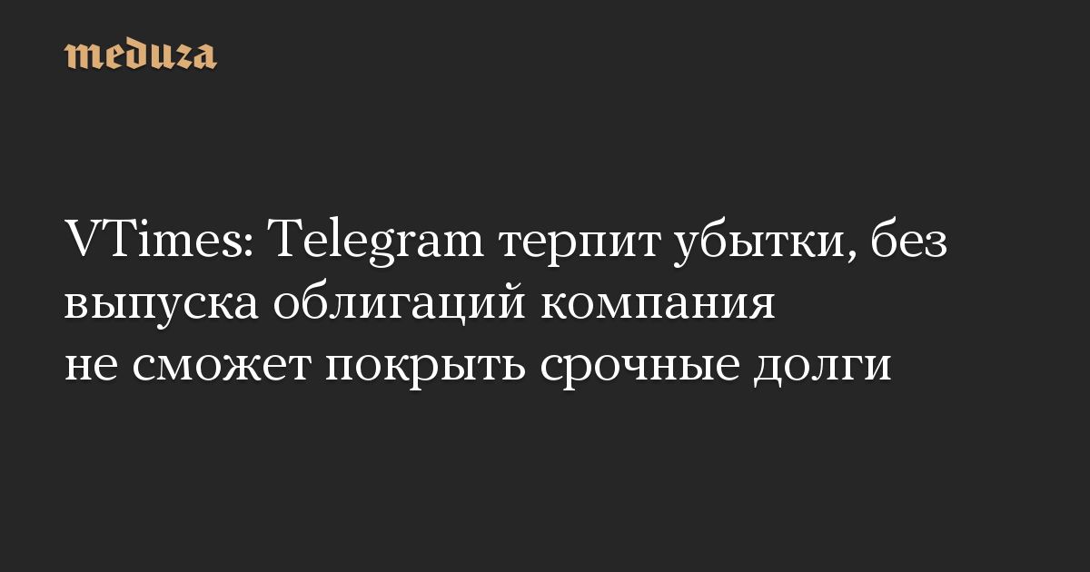 VTimes: Telegram терпит убытки, без выпуска облигаций компания не сможет покрыть срочные долги