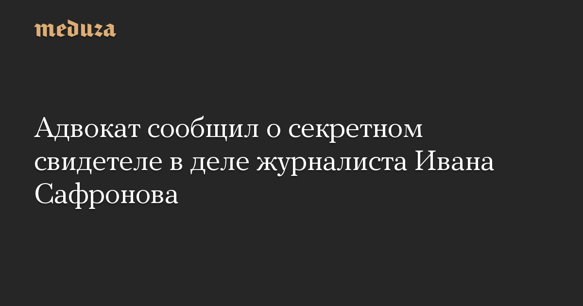 В деле журналиста и советника главы «Роскосмоса» Ивана Сафронова, обвиняемого в госизмене, появился секретный свидетель. Об этом сообщил адвокат Иван Павлов.