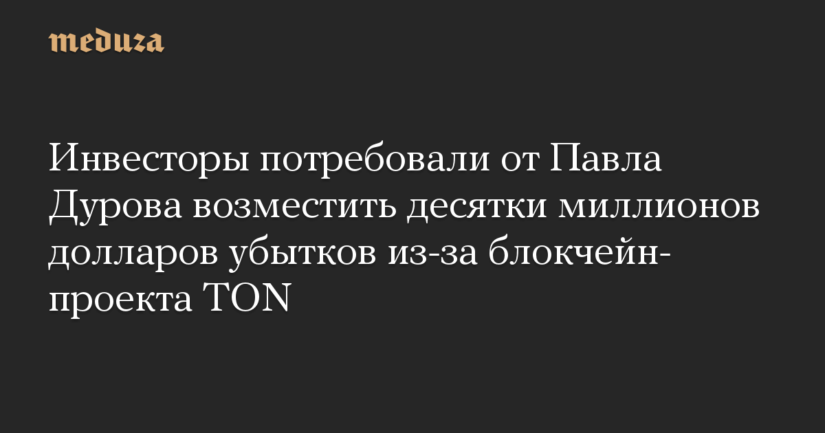 Инвесторы потребовали от Павла Дурова возместить десятки миллионов долларов убытков из-за блокчейн-проекта TON