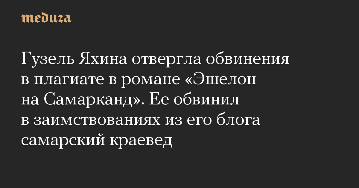 Гузель Яхина отвергла обвинения в плагиате в романе «Эшелон на Самарканд». Ее обвинил в заимствованиях из его блога самарский краевед