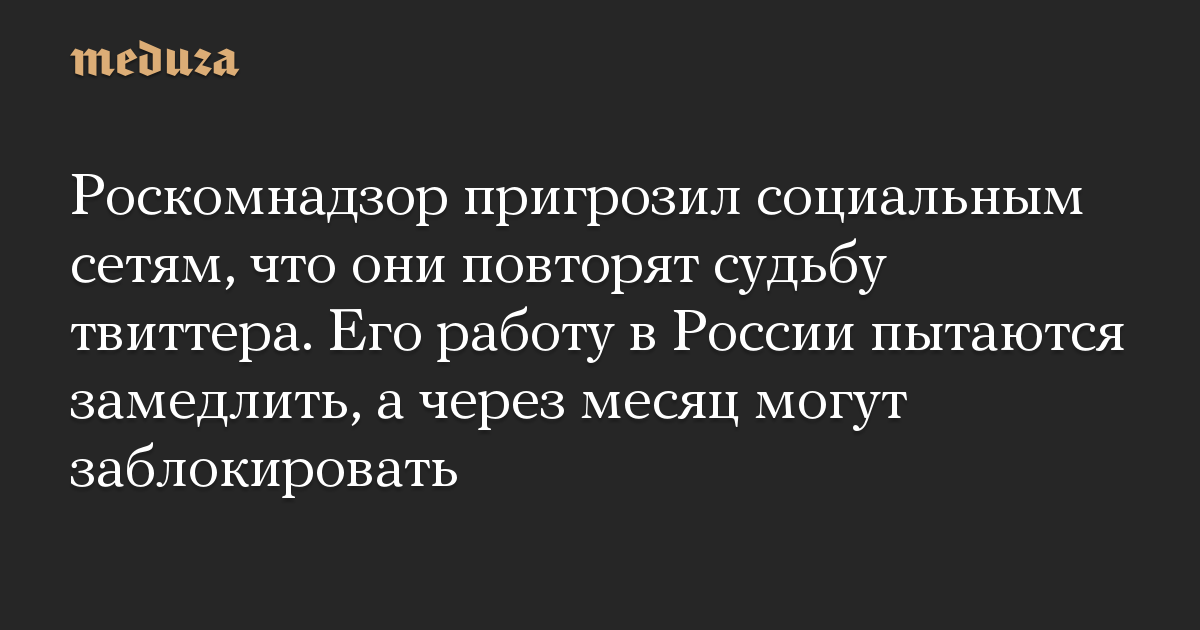 Роскомнадзор пригрозил социальным сетям, что они повторят судьбу твиттера. Его работу в России пытаются замедлить, а через месяц могут заблокировать