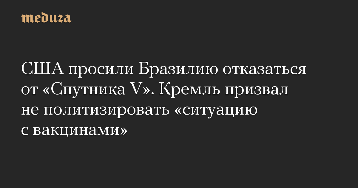 США просили Бразилию отказаться от «Спутника V». Кремль призвал не политизировать «ситуацию с вакцинами»