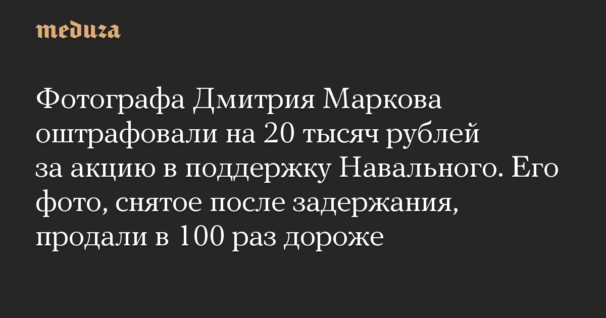 Фотографа Дмитрия Маркова оштрафовали на 20 тысяч рублей за акцию в поддержку Навального. Его фото, снятое после задержания, продали в 100 раз дороже
