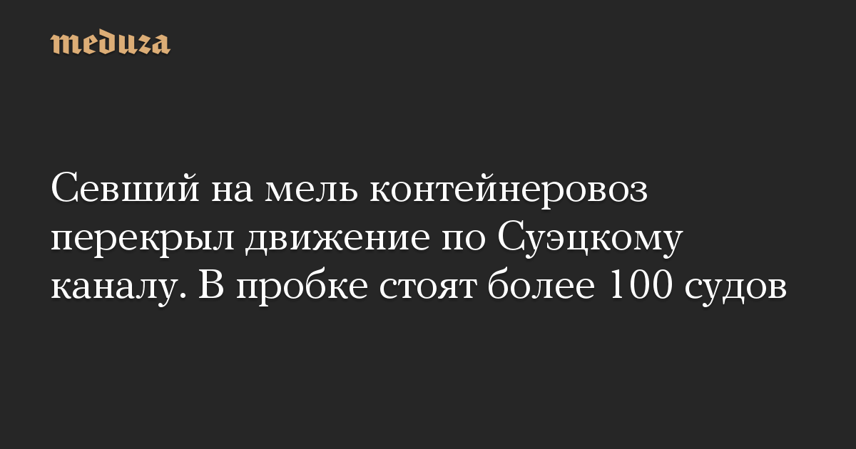 Севший на мель контейнеровоз перекрыл движение по Суэцкому каналу. В пробке стоят более 100 судов
