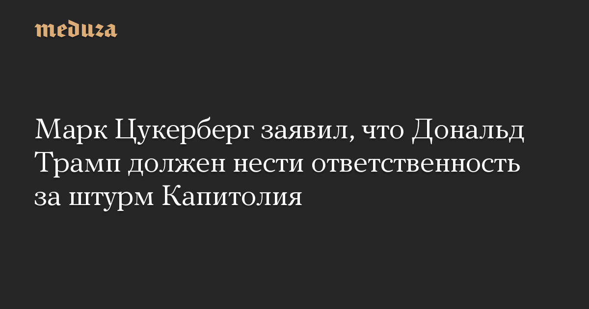 Марк Цукерберг заявил, что Дональд Трамп должен нести ответственность за штурм Капитолия