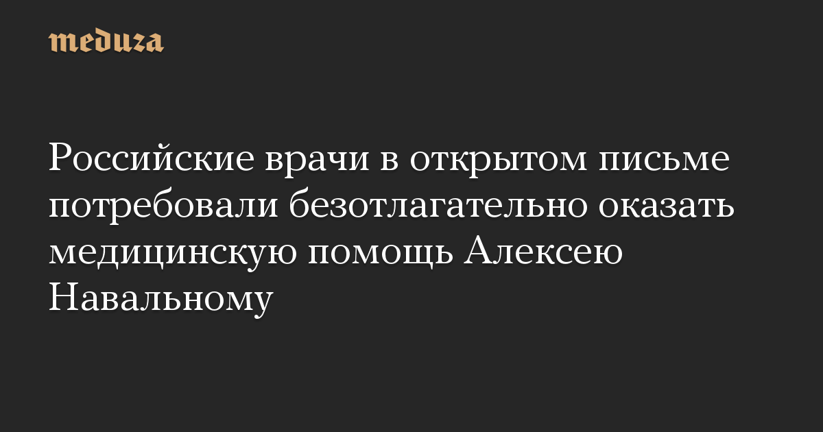 Более двух десятков российских врачей в открытом письме потребовали безотлагательно оказать медицинскую помощь политику Алексею Навальному, находящемуся в заключении в колонии в Покрове. Текст письма приводит The Insider.