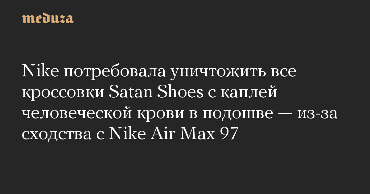 Nike потребовала уничтожить все кроссовки Satan Shoes с каплей человеческой крови в подошве — из-за сходства с Nike Air Max 97