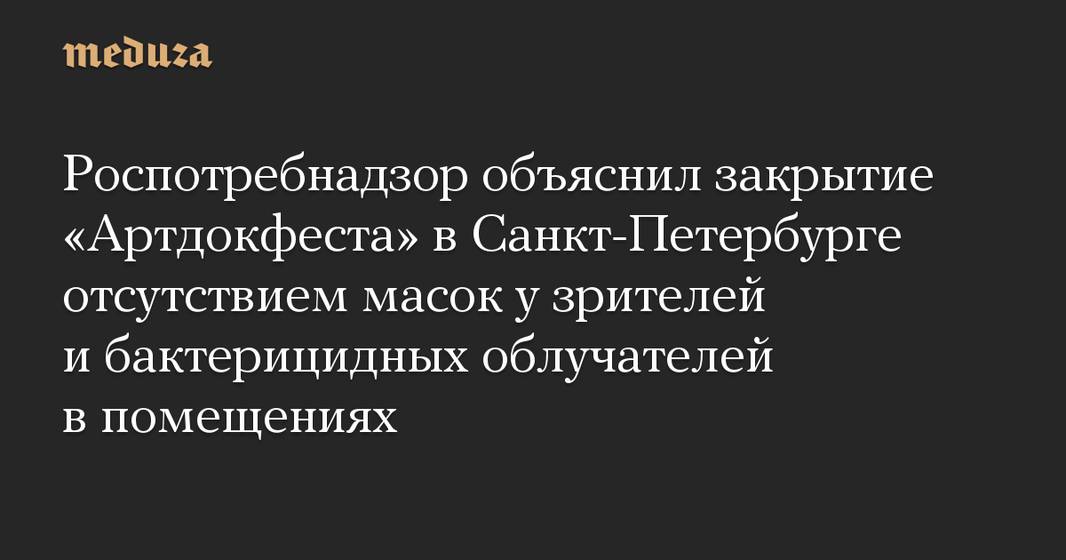 Роспотребнадзор объяснил закрытие «Артдокфеста» в Санкт-Петербурге отсутствием масок у зрителей и бактерицидных облучателей в помещениях