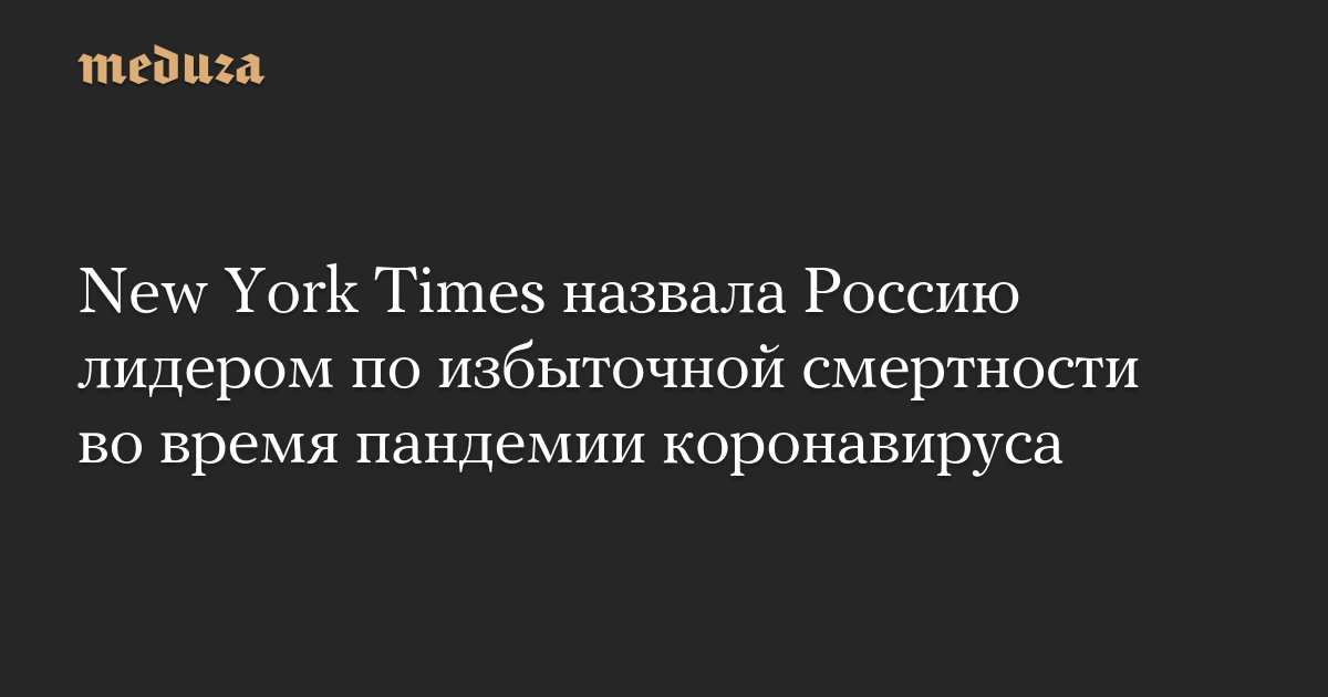 New York Times назвала Россию лидером по избыточной смертности во время пандемии коронавируса
