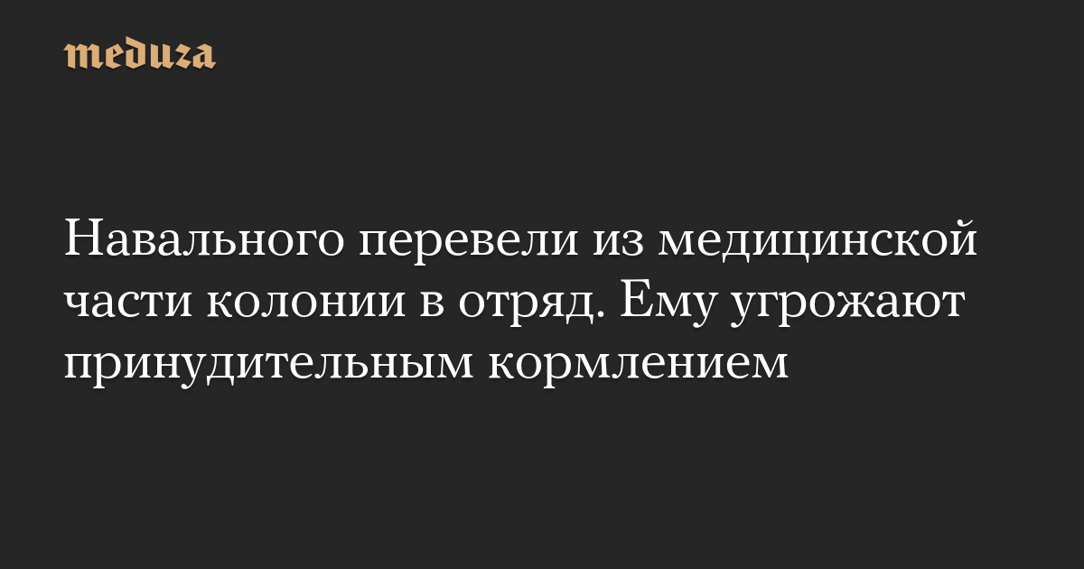 Навального перевели из медицинской части колонии в отряд. Ему угрожают принудительным кормлением