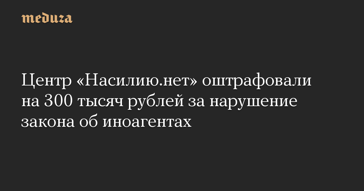 Центр «Насилию.нет» оштрафовали на 300 тысяч рублей за нарушение закона об иноагентах