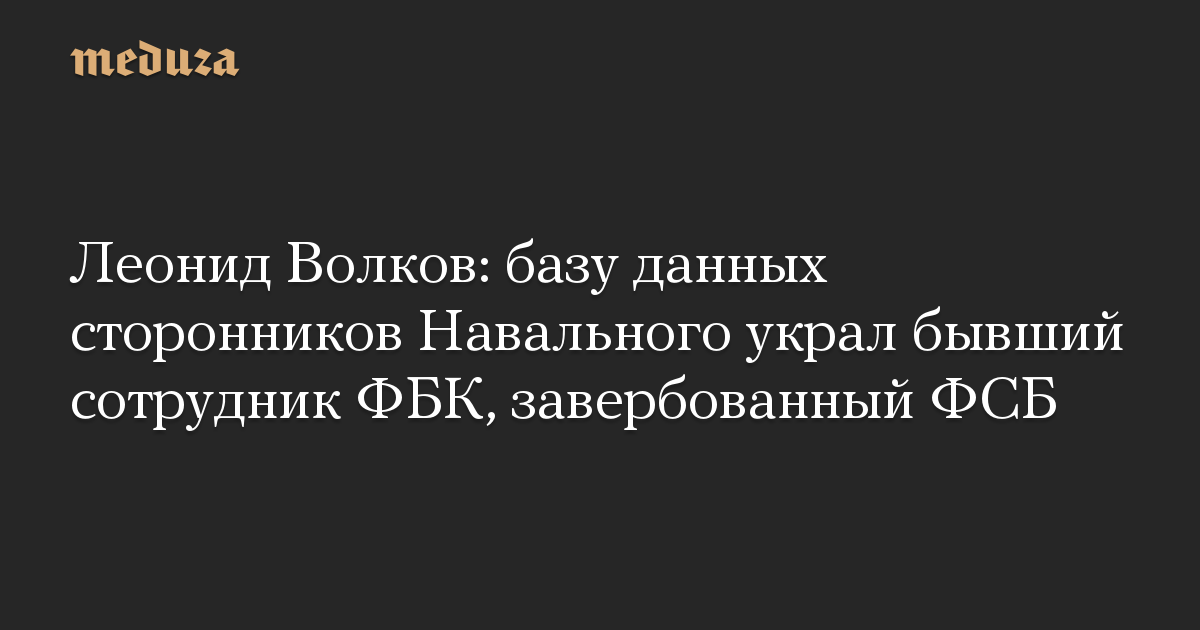 Леонид Волков: базу данных сторонников Навального украл бывший сотрудник ФБК, завербованный ФСБ