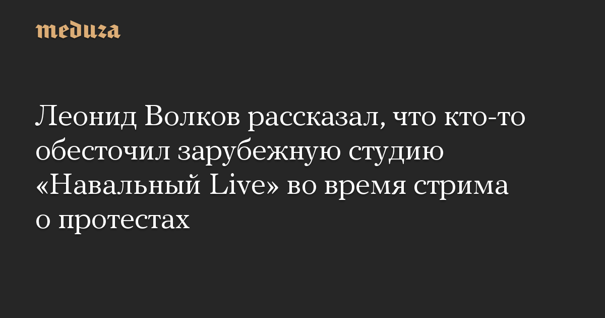 Леонид Волков рассказал, что кто-то обесточил зарубежную студию «Навальный Live» во время стрима о протестах