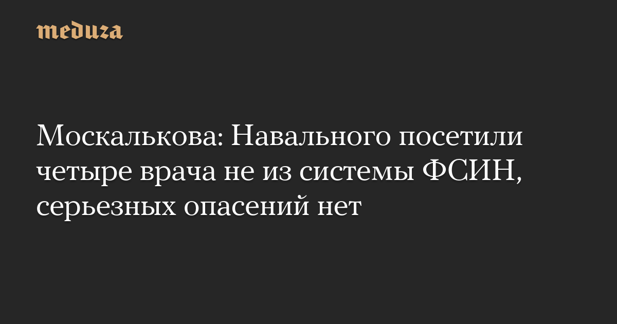 Москалькова: Навального посетили четыре врача не из системы ФСИН, серьезных опасений нет
