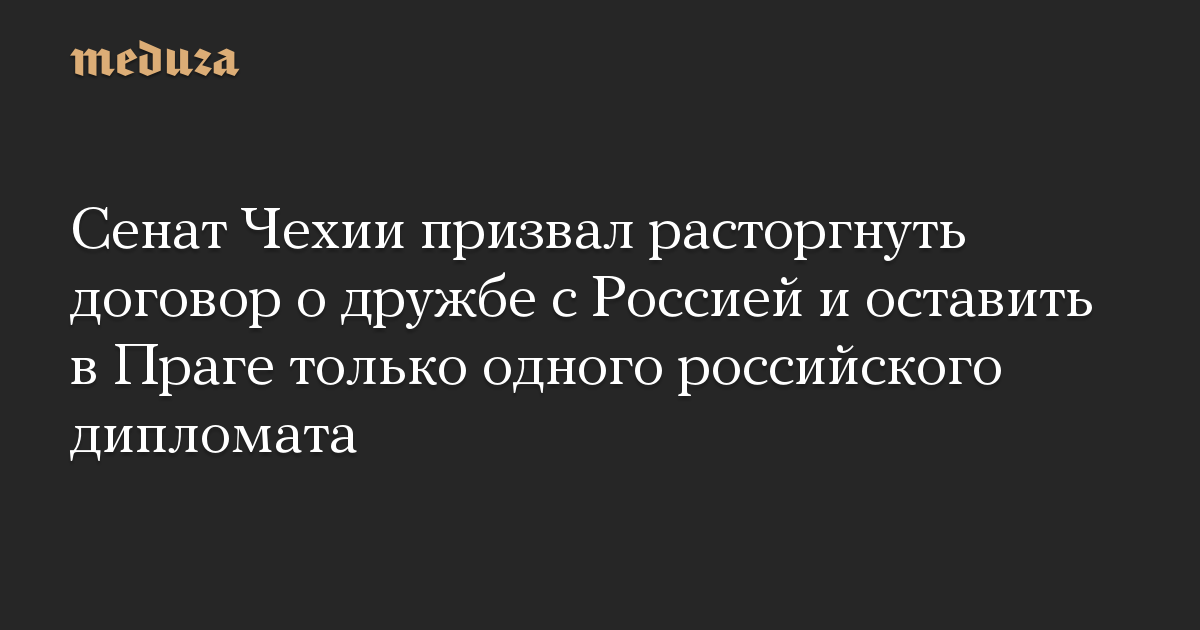 Также сенаторы призвали правительство Чехии разорвать договор о дружественных отношениях и сотрудничестве с Россией и сократить количество сотрудников российского посольства в Праге до одного человека.