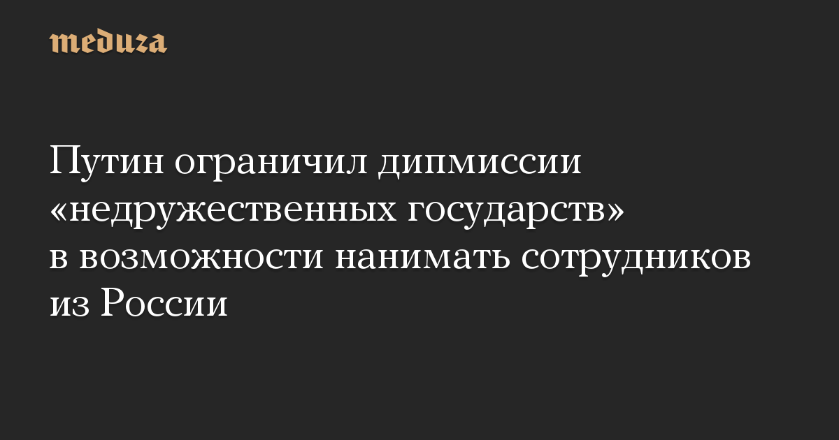 Путин ограничил дипмиссии «недружественных государств» в возможности нанимать сотрудников из России
