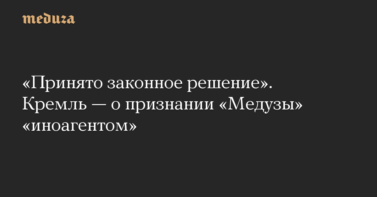 «Принято законное решение». Кремль — о признании «Медузы» «иноагентом»