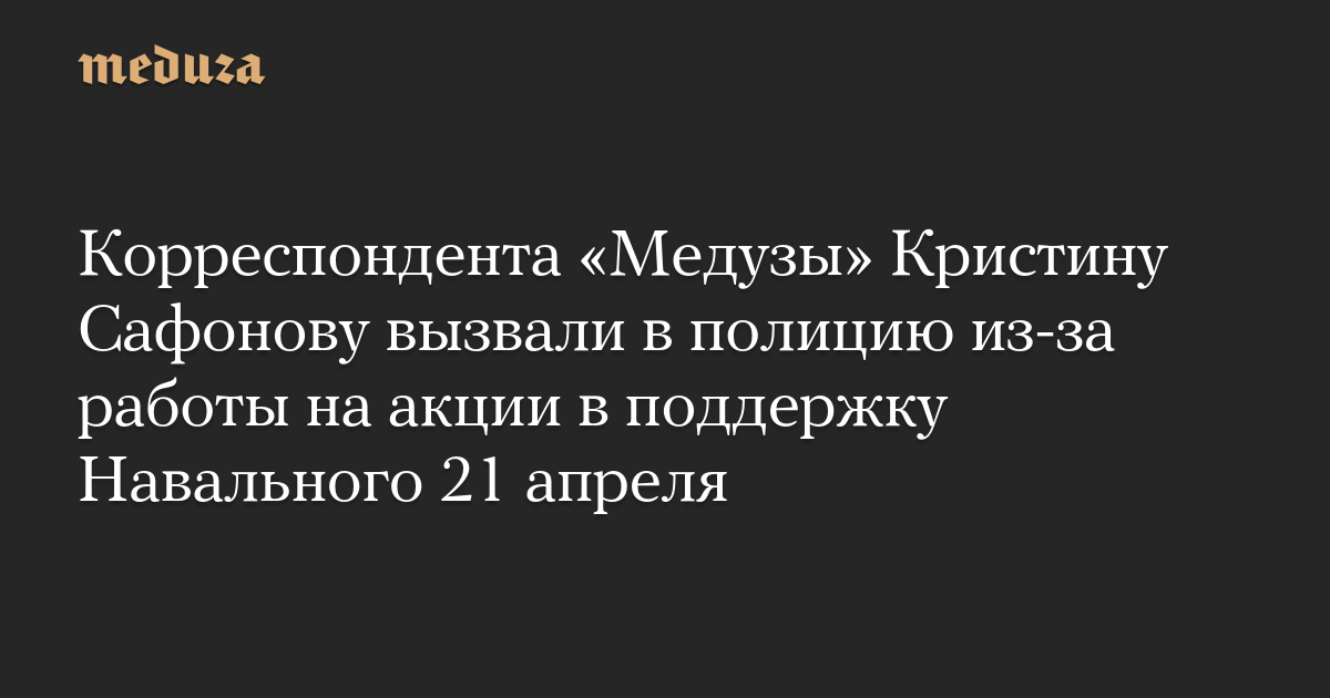 Корреспондента «Медузы» Кристину Сафонову вызвали в полицию из-за работы на акции в поддержку Навального 21 апреля